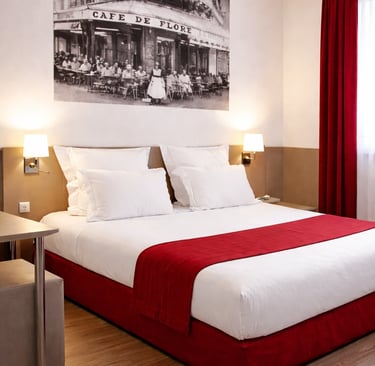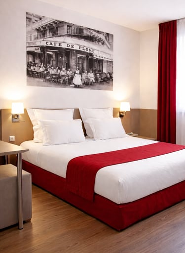 Confortable et élégante, la chambre Supérieure offre un espace plus généreux pour un séjour tout en sérénité. Literie de qualité, ambiance soignée et équipements essentiels créent un cadre propice au repos, idéal pour un déplacement professionnel ou une parenthèse prolongée.